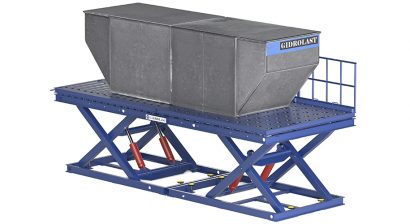 Ножничные подъемные столы оборудованы рольгангом для быстрой разгрузки погрузки авиационных контейнеров максимальной длиной до 3500мм, шириной до 2500мм (тип 2BG-IATA). Данные подъемники нашли широкое применение на авиационных складах в условиях многоуровневого типа хранения и предназначенны для облегчения «скатывания» контейнера без использования грузоподъемных механизмов. столы оборудованы клапанами безопасности для предотвращение падения груза в случае возникновении нештатной ситуации.